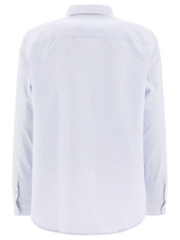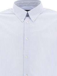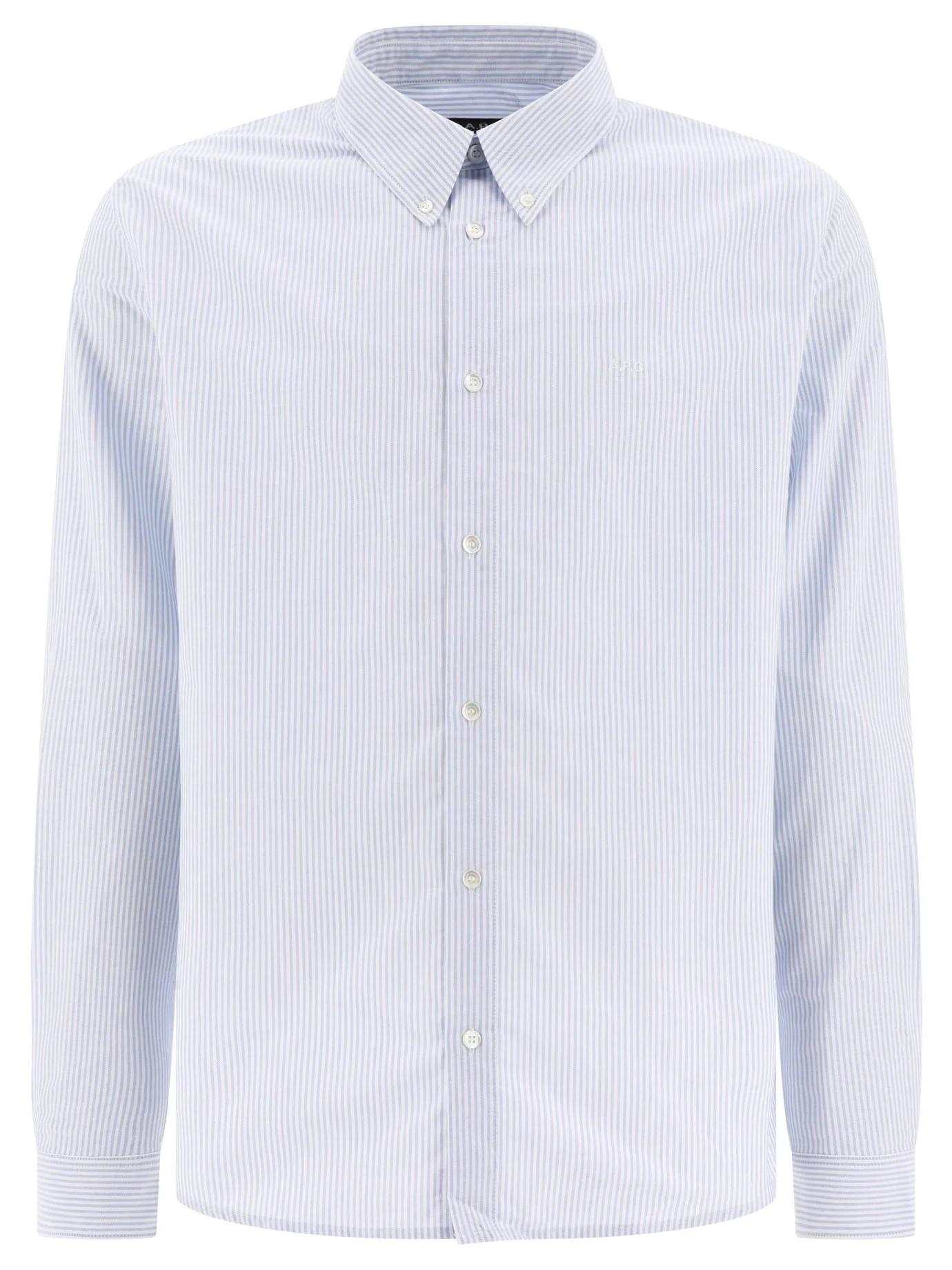 A.P.C. organic cotton "Greg" shirt, made with a striped fabric and straight-cut construction. The garment features a silhouette with slightly sloping shoulders, button-down collar with button closure and tone-on-tone A.P.C. logo embroidered on the heart. The fabric surface follows a compact structure, featuring natural materials and regular trim on the edges. - Striped - Button-down collar - Long sleeves - Straight cut - Slightly sloped shoulders - Tone-on-tone logo embroidered on the heart - Organic cotton - Regular fit - Colour: Light blue - Composition: 100% organic cotton - Country Of Manufacture: Tunisia - Extra Description: StripedRegular fit;Button-down collar;Long sleeves - MPN: COGUHH12499IAA