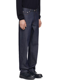 Tapered wide-leg stretch denim jeans. · High-rise · Belt loops · Five-pocket styling · Zip-fly · Logo engraved silver-tone hardware · Contrast stitching in tan Supplier color: Indigo 98% cotton, 2% polyurethane. Made in Viet Nam 242252M186016