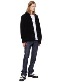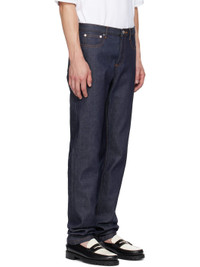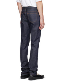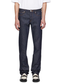 Slim-fit straight-leg stretch raw selvedge denim jeans. · Low-rise · Belt loops · Five-pocket styling · Button-fly · Logo engraved silver-tone hardware · Contrast stitching in tan Supplier color: Stretch indigo 98% cotton, 2% polyurethane. Made in Viet Nam 242252M186040
