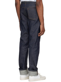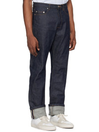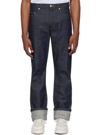 Straight-leg loose-fit non-stretch raw selvedge denim jeans. · High-rise · Belt loops · Five-pocket styling · Button-fly · Logo-engraved silver-tone hardware · Contrast stitching in tan Supplier color: Indigo 100% cotton. Made in Viet Nam 242252M186022