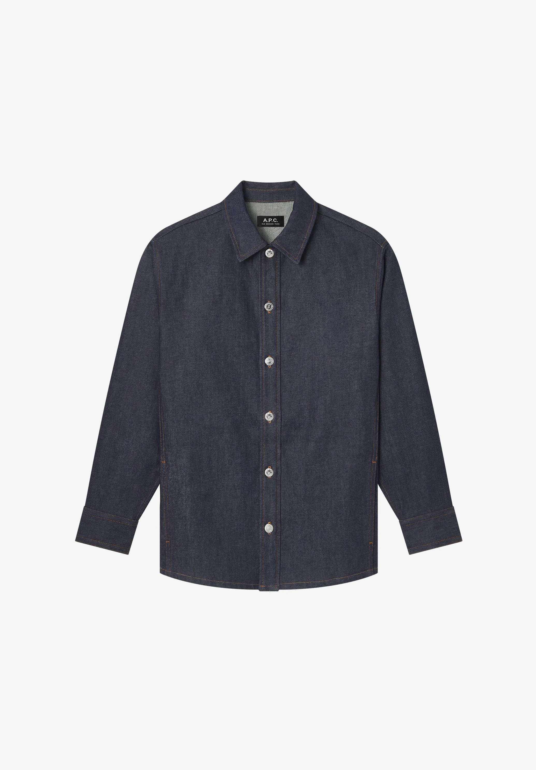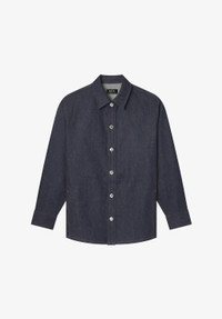 - Unisex model. - Straight cut. - Classic collar. - Guitar and dagger buttons. - Two side pockets. - Caramel topstitching. Size Advice - Henry is 6' tall and is wearing size M. Composition & Material - 98% cotton. 2% polyurethane. - Japanese material. - Made in Viet Nam. - Machine wash cold (86°F) inside-out.