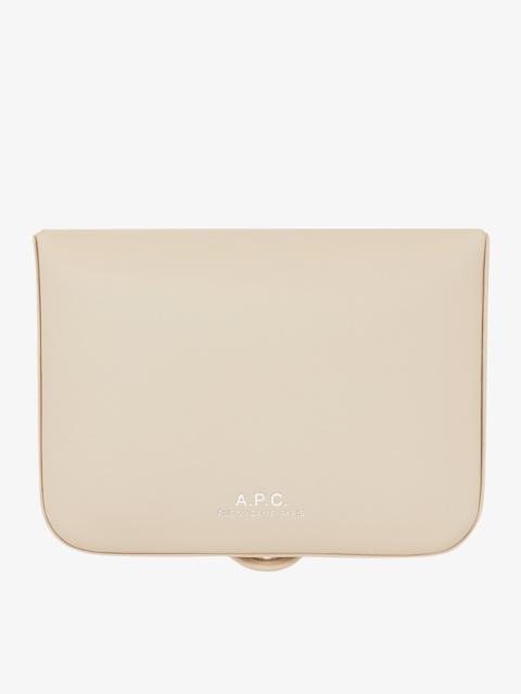 A.P.C. Men's coin purse. - Smooth vegetable-tanned leather. - Leather molded with traditional techniques. - Coin pocket. - Compartment with five card slots. - Rounded corners. - Snap flap closure. - Small silvertone 'A.P.C. Rue Madame Paris' logo embossed on front. Size Advice - Cotton lining. - Dimensions: 3.9 x 3 x 0.6 - Credit card format cardholder. Composition & Material - 100% cowhide leather. - Spanish material. - Made in Spain. - This vegetable-tanned leather is produced with natural tannins. - Any marks or traces developed on the leather are normal and contribute to its unique charm. Pale colours will also darken. - We recommend protecting this leather from sunlight heat and water. - Wipe clean with a soft dry cloth.