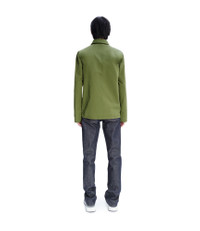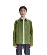 A.P.C. Men's jacket. - Straight cut. - Topstitched classic collar. - Buttoned closure with five buttons. - Two pockets at the bottom of the jacket. - Hook tab in the neck. - Unlined. Size Advice - Zang is 6'1 tall and is wearing size M. Composition & Material - 100% Cotton. - Machine wash cold (86°F) inside-out. Our commitments Through its RESPECT program A.P.C reduces (by implementing many practical measures to improve its environmental footprint) regulates (by respecting and enforcing its ethical responsibility on the part of its employees as well as its suppliers) and reuses (through its recycling vintage or quilts and butler programs for example).