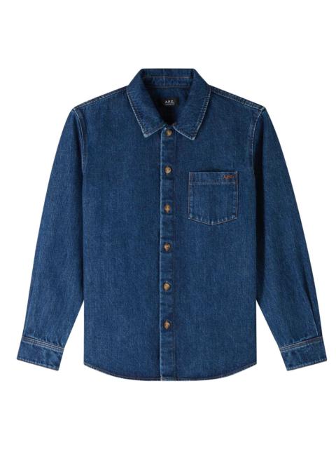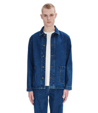 A.P.C. Men's jacket. - Straight cut. - Classic collar. - Closes with five buttons. - Two pockets at the bottom of the jacket. - Hang loop at back of neck. - Unlined. - Tone-on-tone A.P.C. embroidered at the bottom of the left pocket. - 100% organic cotton. Size Advice - Tim is 6'1 tall and is wearing size M. Composition & Material - 100% cotton. - Japanese material. - Made in Vietnam. - Machine wash cold (86°F) inside-out.