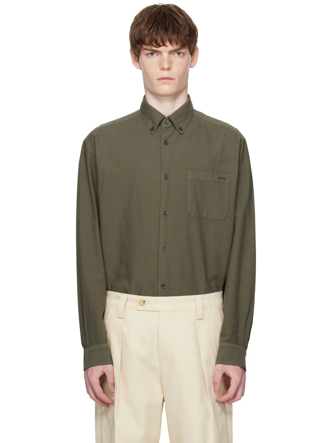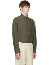 Plain-woven cotton shirt. · Spread collar · Button closure · Logo embroidered at patch pocket · Shirttail hem · Buttoned barrel cuffs · Twin pleats at back yoke Supplier color: Forest Green 100% cotton. Made in Morocco 252252M192017