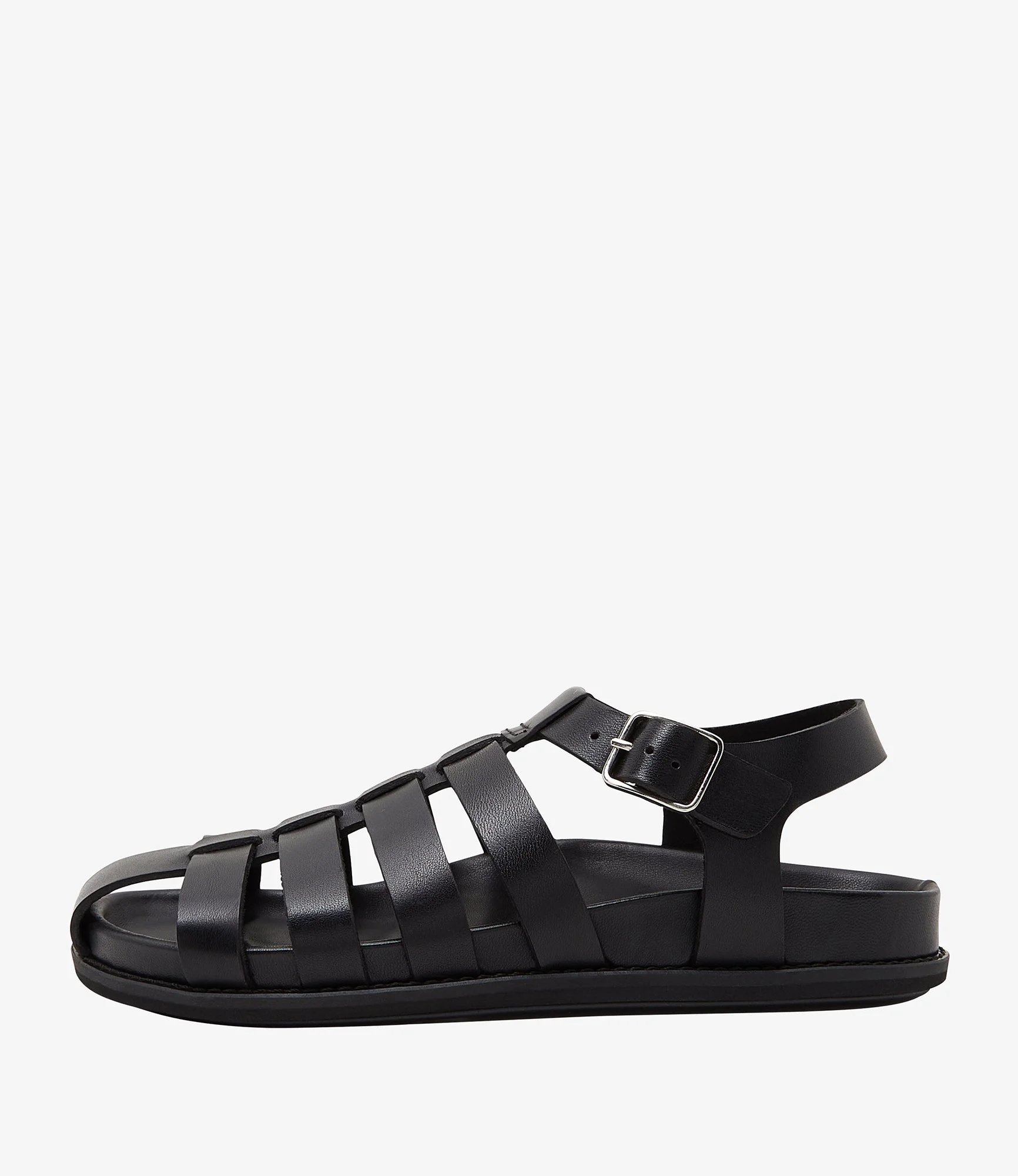 - Straps on the instep. - Adjustable silvertone metal buckle at the ankle. - Leather insole and outsole. Size Advice - Sizes: 40 to 45. Composition & Material - 100% cowhide leather. - Italian material. - Made in Portugal. - Care instructions: wipe with a soft dry cloth.