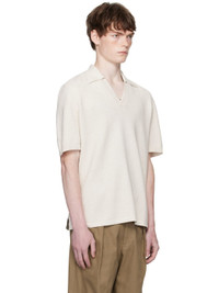 Textured knit cotton polo. · Rib-knit spread collar and cuffs · Open placket · Vented side seams Supplier color: Heathered ecru 100% cotton. Made in Turkey 252252M212006