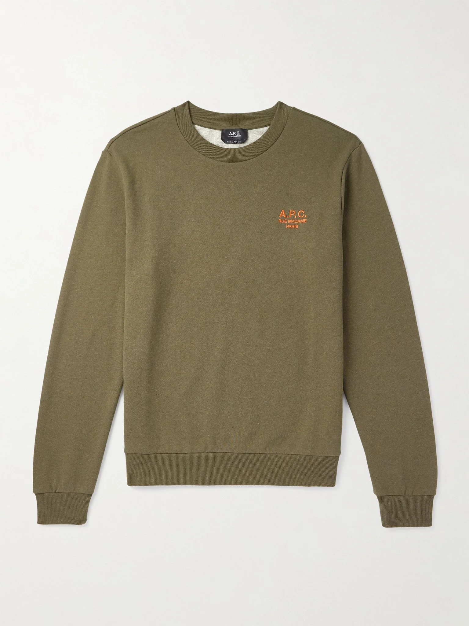 A.P.C.'s sweatshirt is made from loopback jersey that's knitted from a cotton-blend. It has a relaxed shape defined by ribbed trims and contrasting logo embroidery at the chest. Size & Fit - Fits true to size. Take your normal size - Take the next size up if you wish to achieve a looser fit - Mid-weight, slightly stretchy fabric - Model is shown wearing a M - Model measures: chest 38"/ 96cm, height 6'2"/ 188cm Details & Care - Olive-green cotton-blend jersey - 99% cotton, 1% elastane - Machine wash