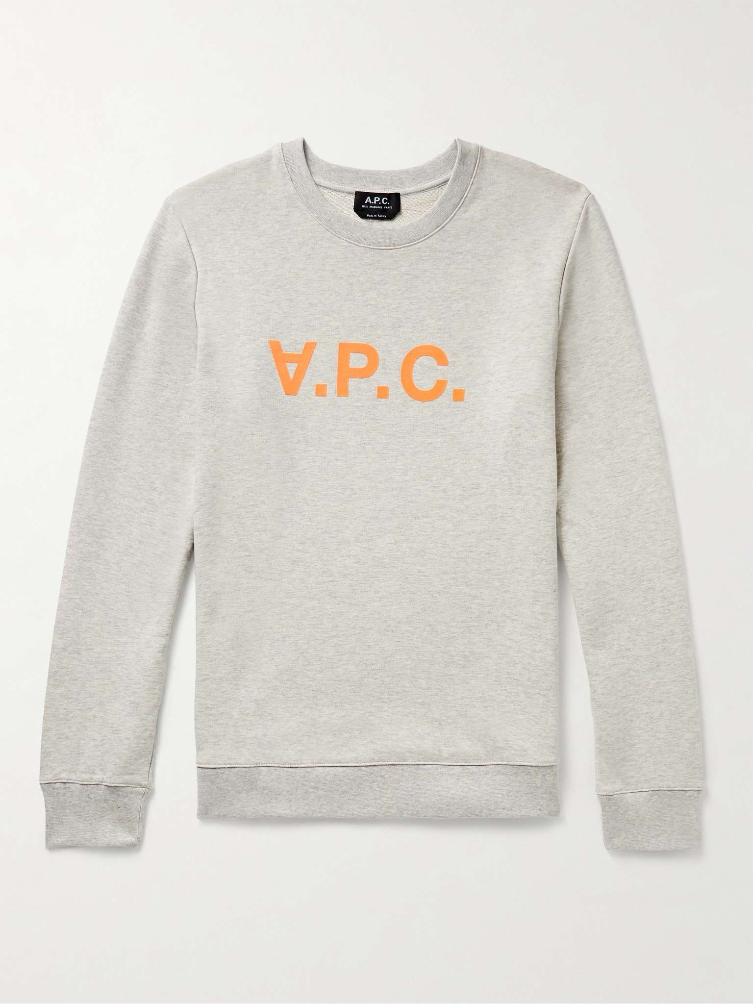 A.P.C.'s sweatshirt is flocked with a partially upturned logo - a quiet act of defiance from a typically understated brand. It's made from loopback cotton-jersey in a light-grey shade. Wear yours with tailored trousers or a pair of track pants. Size & Fit - Model wears a size larger to achieve a looser fit - Mid-weight, slightly stretchy fabric - Model is shown wearing a L - Model measures: chest 38"/ 96cm, height 6'2"/ 188cm Details & Care - Light-grey mélange loopback cotton-jersey - 100% cotton; trim: 95% cotton, 5% elastane - Machine wash - Made in France
