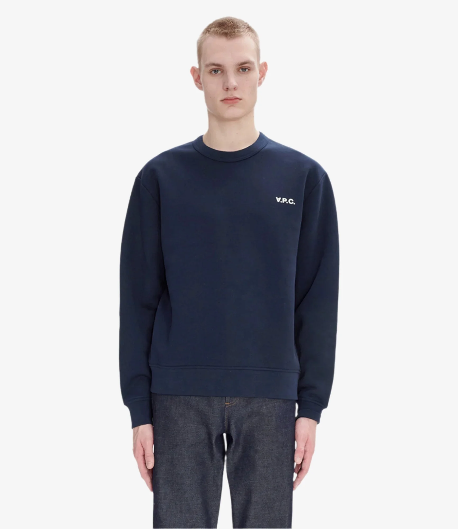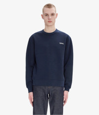 A.P.C. Men's sweatshirt. - Wide boxy fit. Size down 1 if between sizes or regular fit is desired. - Loose fit. - Crew neck. - Velvety flocked V.P.C. logo over the heart. - 100% organic cotton. Size Advice - Model is 6'1 tall and is wearing size M. - Wide boxy fit. Size down 1 if between sizes or regular fit is desired. Composition & Material - 100% cotton. - Portuguese material. - Made in Portugal. - Machine wash cold (86°F) inside-out.