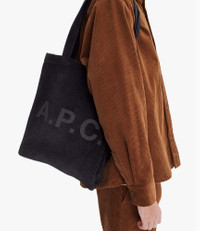 - Unisex piece. - Unlined corduroy tote bag. - Two large handles to carry the bag by hand or on the shoulder. - Inside pocket. - A.P.C. screenprint on front. Size Advice - Dimensions: 11.8 x 14.6 x 3.3. Composition & Material - 100% cotton. - Made in Bulgaria. Our commitments Through its RESPECT program A.P.C reduces (by implementing many practical measures to improve its environmental footprint) regulates (by respecting and enforcing its ethical responsibility on the part of its employees as well as its suppliers) and reuses (through its recycling vintage or quilts and butler programs for example).