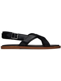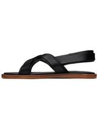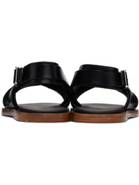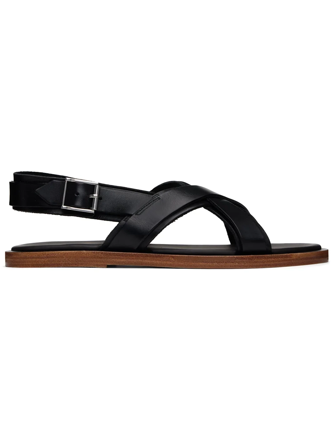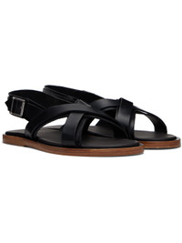 Buffed leather sandals in black. · Open toe · Crisscrossing straps at vamp · Pin-buckle ankle strap · Stacked leather midsole · Nubuck leather sole Supplier color: Black Leather. Made in Morocco 251252M234000