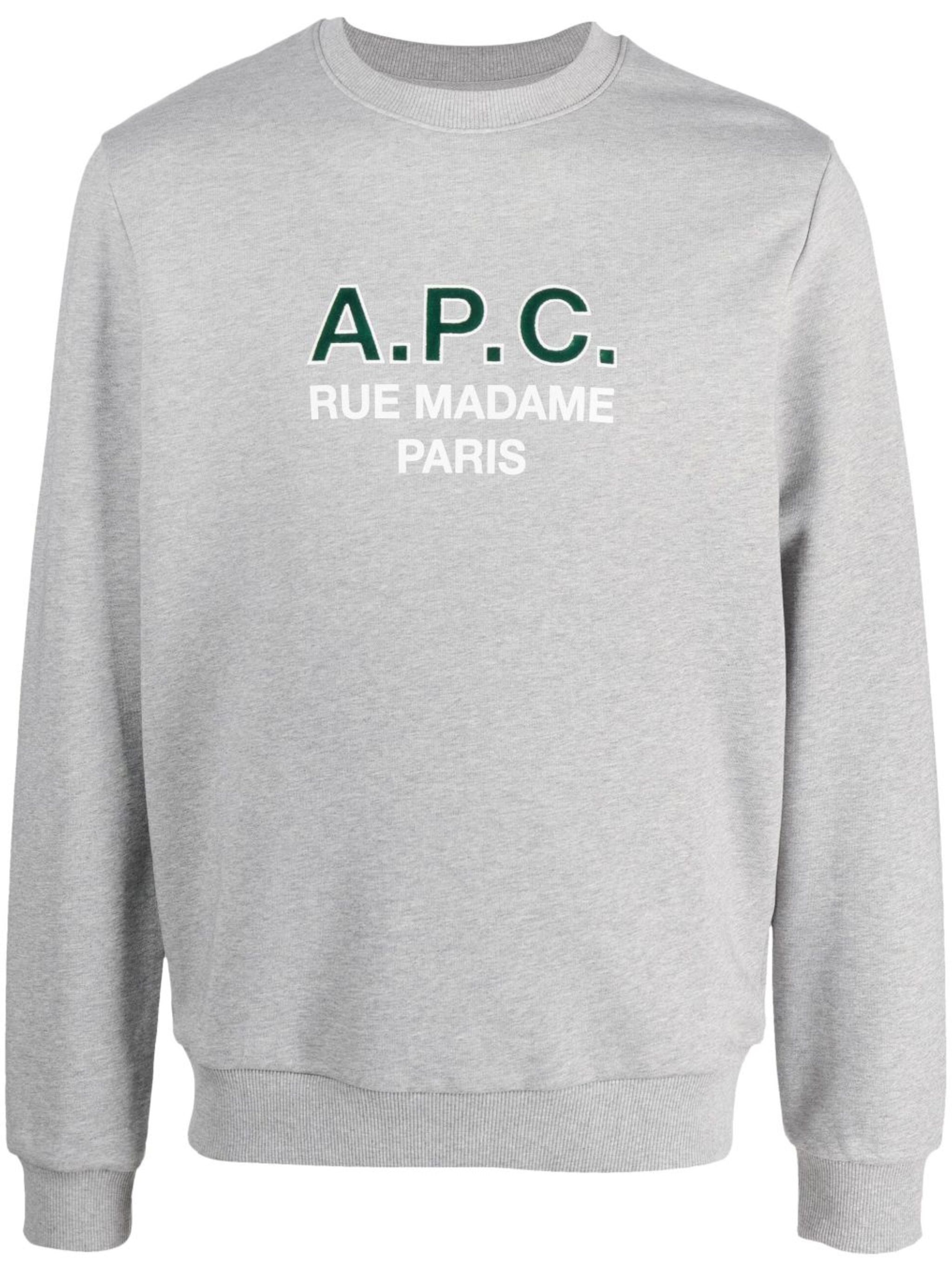 Madame logo-print cotton sweatshirt from A.P.C. featuring grey, cotton, logo print to the front, crew neck, long sleeves, ribbed cuffs and hem and straight hem. Size & Fit Model Measurements: Bust: 87cm Height: 186cm Hips: 89cm Waist: 69cm