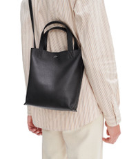 A.P.C. shopping tote bag. - Unisex model. - Shopper tote in unlined leather. - Two handles for hand carrying. - Shoulder strap for carrying on shoulder or across chest. - Interior zip pocket. - Tote bag shape. - Embossed 'A.P.C. Rue Madame Paris' logo. - Small version of the Maiko and Maiko Medium shopper totes. Size Advice - Dimensions: 9.8 x 8.1 x 3.1. - Strap: 18.9 at its shortest. Composition & Material - 100% cowhide leather. - Spanish material. - Made in Tunisia. - Wipe clean with a soft dry cloth. Our commitments Through its RESPECT program A.P.C reduces (by implementing many practical measures to improve its environmental footprint) regulates (by respecting and enforcing its ethical responsibility on the part of its employees as well as its suppliers) and reuses (through its recycling vintage or quilts and butler programs for example).