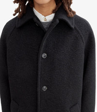 - Thick warm Italian wool. - Straight cut with a slightly loose fit. - Knee length. - Raglan sleeves. - Two side pockets. - Faux horn buttons. - Viscose lining. Size Advice null Composition & Material - 100% wool. - Italian material. - Made in Bulgaria. - Dry clean only.