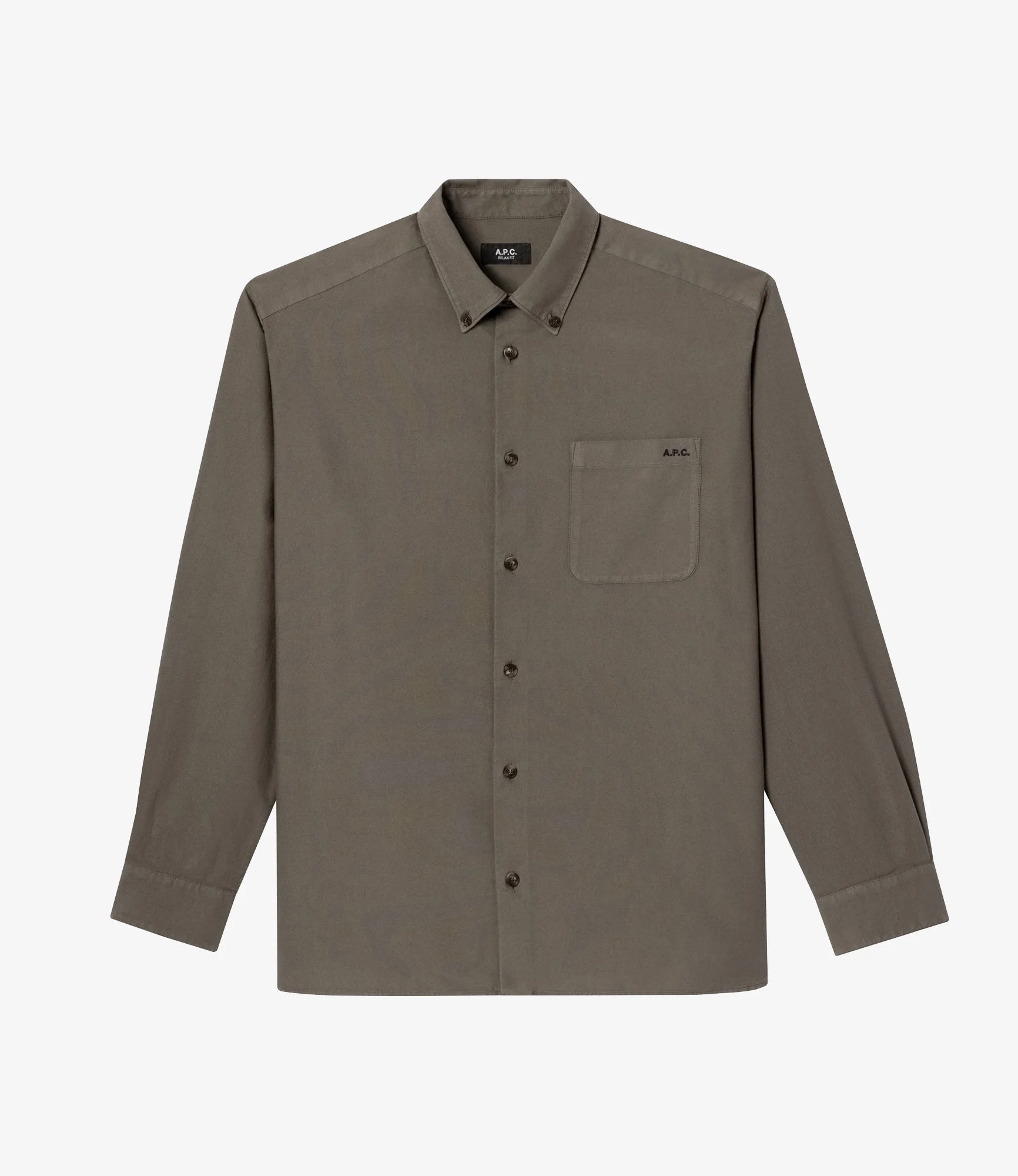 - Soft breathable material. - Straight cut with a slightly loose fit. - Button-down collar. - One pocket over the heart embroidered with a contrasting A.P.C. logo. - Buttons engraved A.P.C. - 100% organic cotton. Size Advice - Leo is 6'2 tall and is wearing size M. - This item sizes normally. We recommend that you select your usual size. Composition & Material - 100% cotton. - Portuguese material. - Made in Morocco. - Machine wash cold (86°F) inside-out.