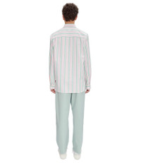 - Straight cut. - Buttoned collar. - White A.P.C. logo embroidered over the heart. - White buttons engraved 'A'. Size Advice - Antoine is 6'1 tall and is wearing size M. Composition & Material - 90% Cotton. 10% Polyester. - Made in Morocco. - Machine wash cold 65-85˚ F inside-out. Our commitments Through its RESPECT program A.P.C reduces (by implementing many practical measures to improve its environmental footprint) regulates (by respecting and enforcing its ethical responsibility on the part of its employees as well as its suppliers) and reuses (through its recycling vintage or quilts and butler programs for example).