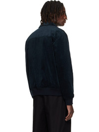 Cotton corduroy jacket. · Spread collar · Zip closure · Logo embroidered at chest · Welt pockets at waist · Rib-knit hem and cuffs · Welt pocket at interior · Full satin twill lining · Silver-tone hardware Supplier color: Dark navy Body: 100% cotton. Lining: 100% viscose. Made in Bulgaria 252252M180016