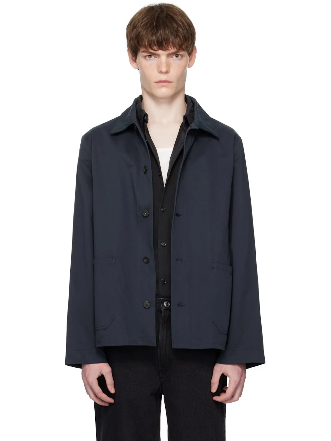 Cotton gabardine jacket. · Spread collar · Button closure · Patch pockets at waist · Logo embroidered at patch pocket · Patch pocket at interior · Unlined Supplier color: Dark navy blue 100% cotton. Made in Romania 252252M180002
