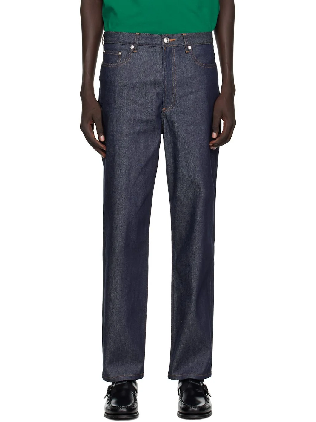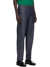 Stretch denim jeans. · Fading throughout · Straight-leg · High-rise · Belt loops · Five-pocket styling · Zip fly · Logo-engraved silver-tone hardware · Contrast stitching in tan Supplier color: Indigo 98% cotton, 2% polyurethane. Made in Viet Nam 252252M186017