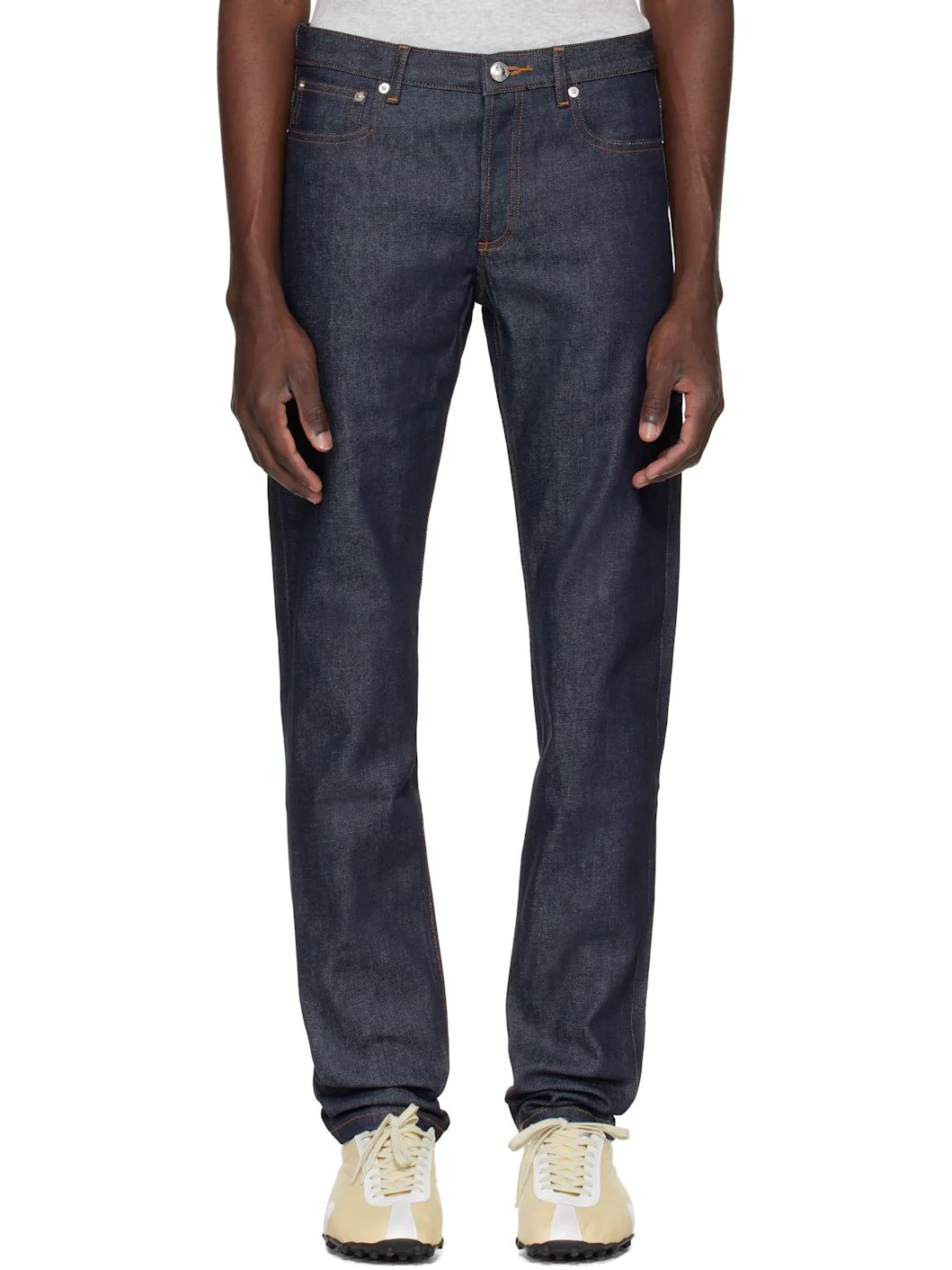 Stretch denim jeans. · Straight-leg · Mid-rise · Belt loops · Five-pocket styling · Zip fly · Logo-engraved silver-tone hardware · Contrast stitching in tan Supplier color: Stretch Indigo 98% cotton, 2% polyurethane. Made in Viet Nam 252252M186000