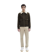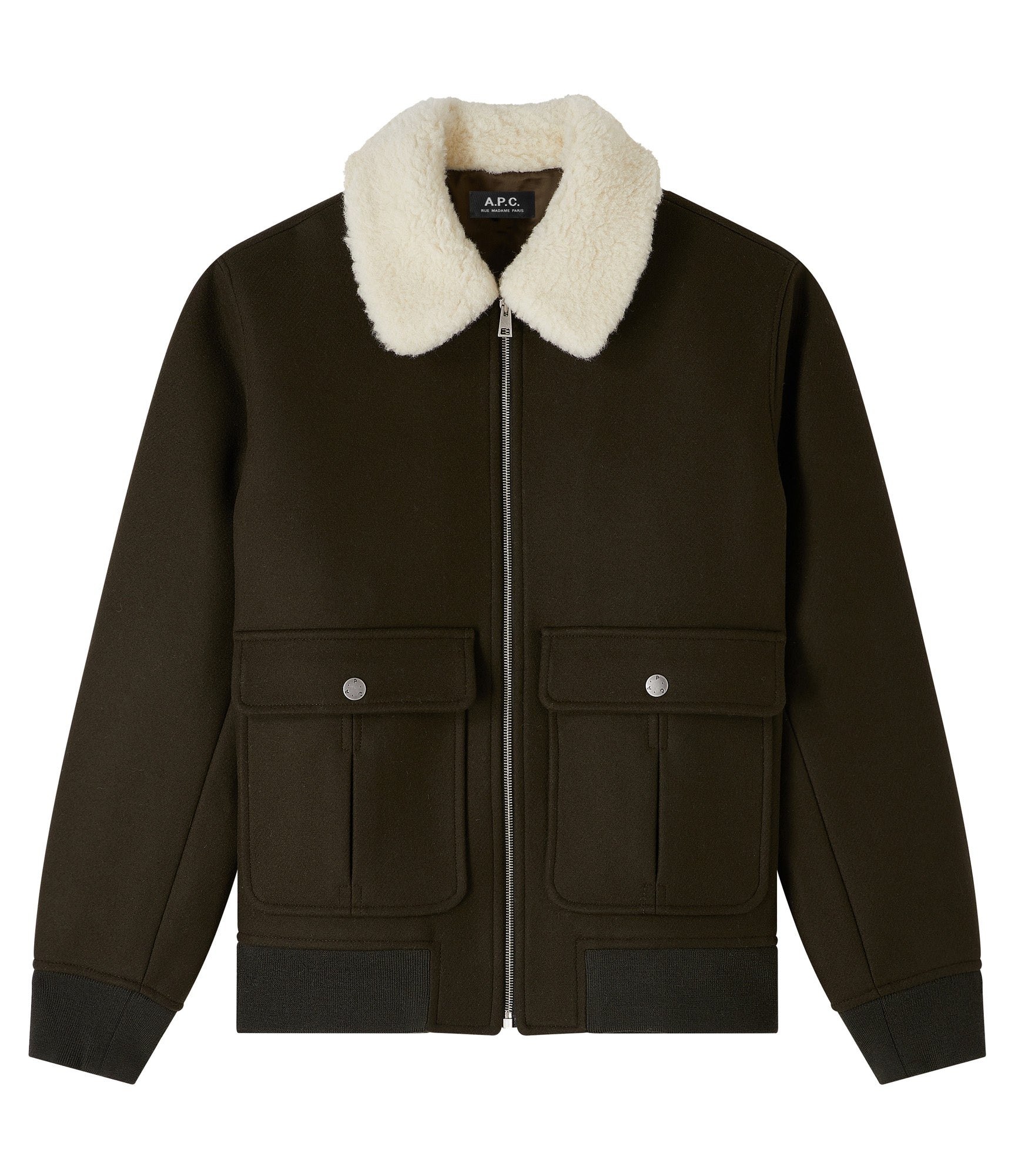 PRODUCT DETAILS - Straight cut. - Wool collar. - Zip closure. - Two flap pockets with A.P.C. logo snap buttons. - Ribbed hem and sleeve ends. FABRIC & CARE - 75% wool. 25% polyamide. - Made in Romania. - Dry clean. SIZE - Jeranimo is 6'2" tall and is wearing size M.
