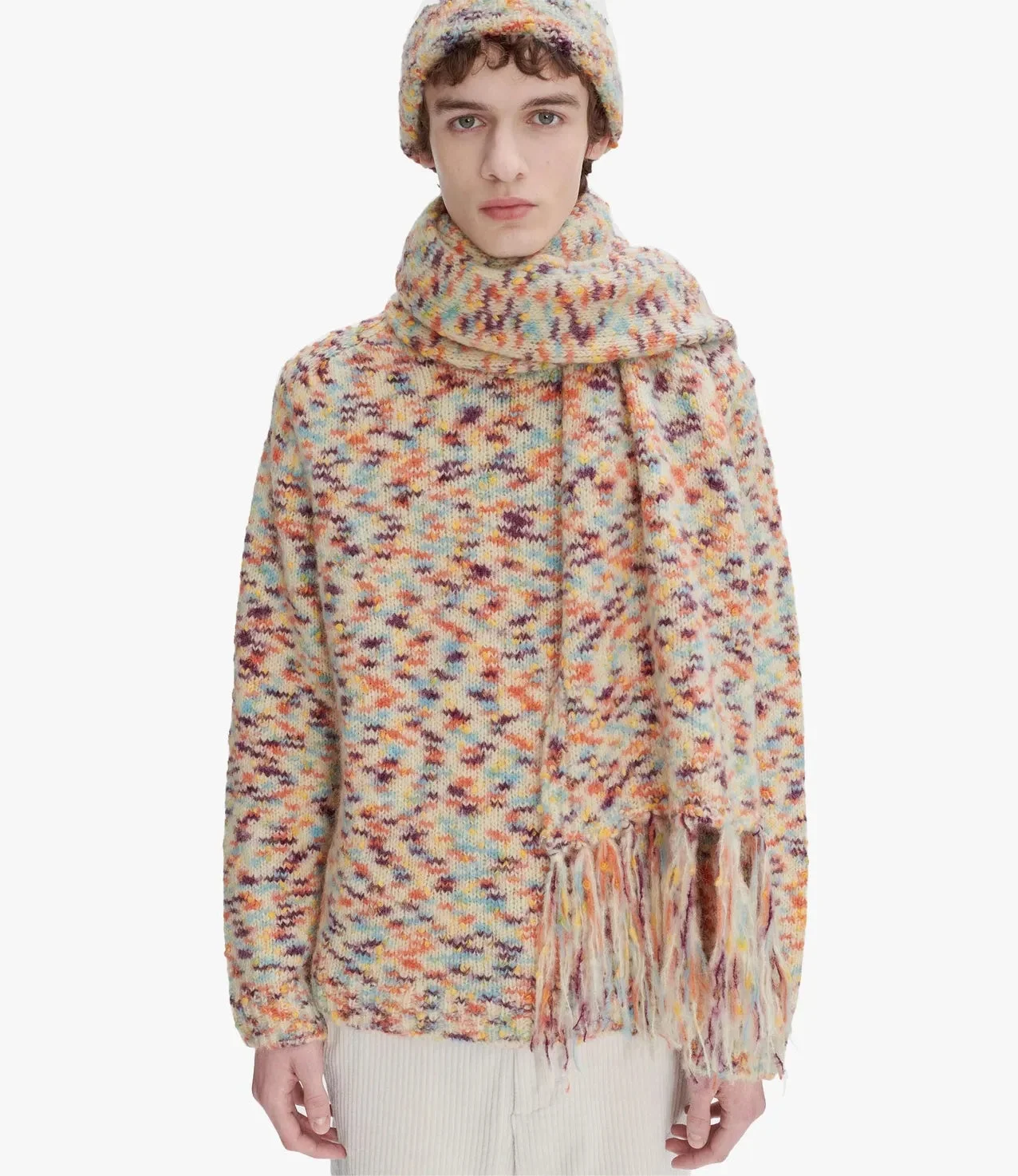 - Unisex piece. - Warm thick and soft material. - Handcrafted fringe. Size Advice - This item sizes normally. We recommend that you select your usual size. Composition & Material - 40% wool. 36% mohair. 13% polyamide. 11% cotton. - Italian material. - Made in Turkiye. - Hand wash or delicate cycle. SHIPPING - Free standard shipping to the U.S. - Free in-store pick up - During promotions please allow 5-6 business days for order shipment RETURNS u0026 EXCHANGES - 14-day return window for refunds or exchanges - Items must be in original condition - $10 restock fee (no fee applied to in-store return) - No returns/exchanges on e-gift cards or FINAL SALE items false false false false false false Our commitments Through its RESPECT program A.P.C reduces (by implementing many practical measures to improve its environmental footprint) regulates (by respecting and enforcing its ethical responsibility on the part of its employees as well as its suppliers) and reuses (through its recycling vintage or quilts and butler programs for example).