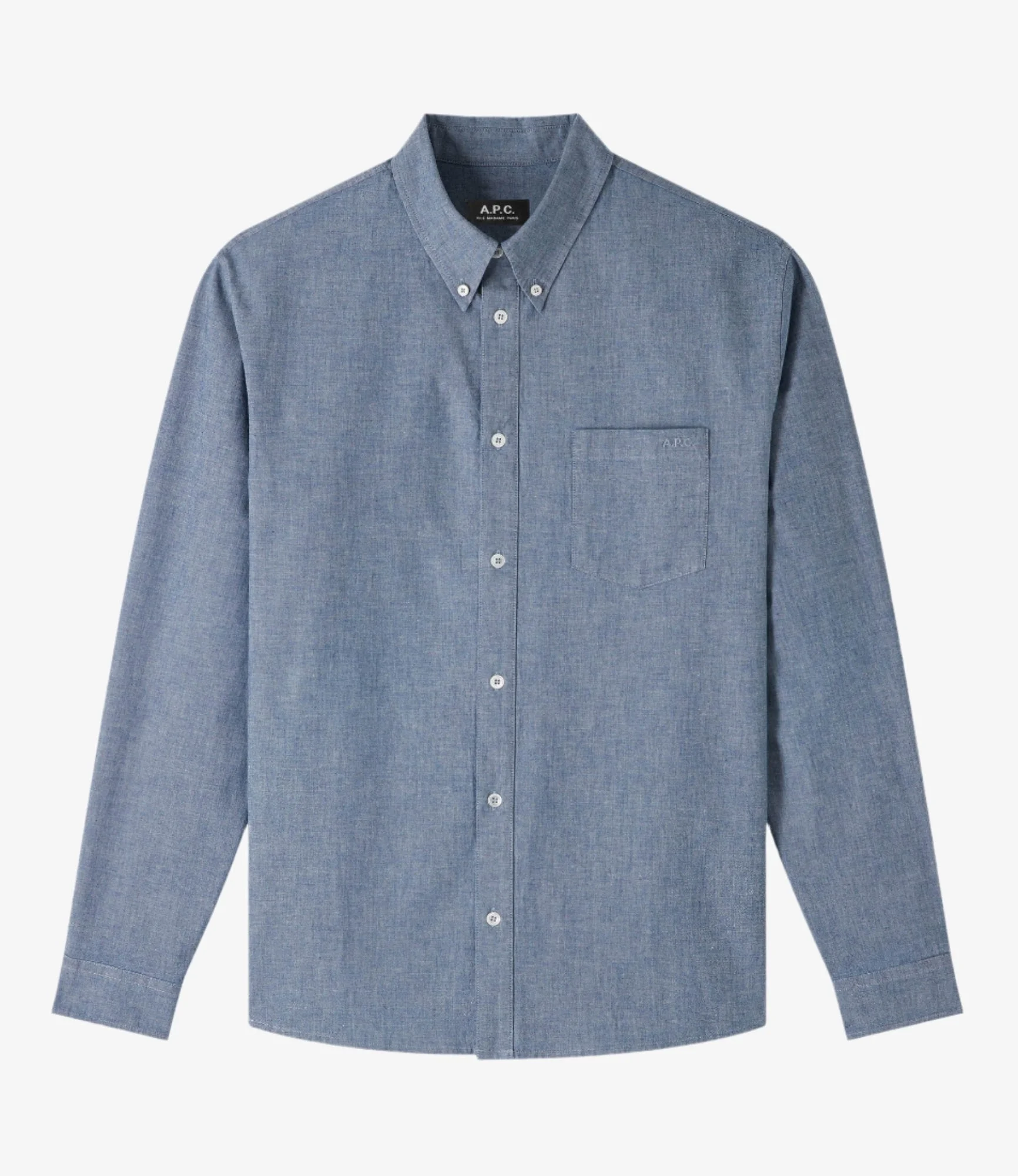 A.P.C. Men's shirt. - Straight cut. - Slightly sloping shoulders. - Button-down collar. - Pocket over the heart. - Tone-on-tone A.P.C. logo embroidered on the pocket. Size Advice - Vincent is 6'1 tall and is wearing size M. Composition & Material - 100% cotton. - Portuguese material. - Made in Tunisia. - Machine wash cold (86°F) inside-out.