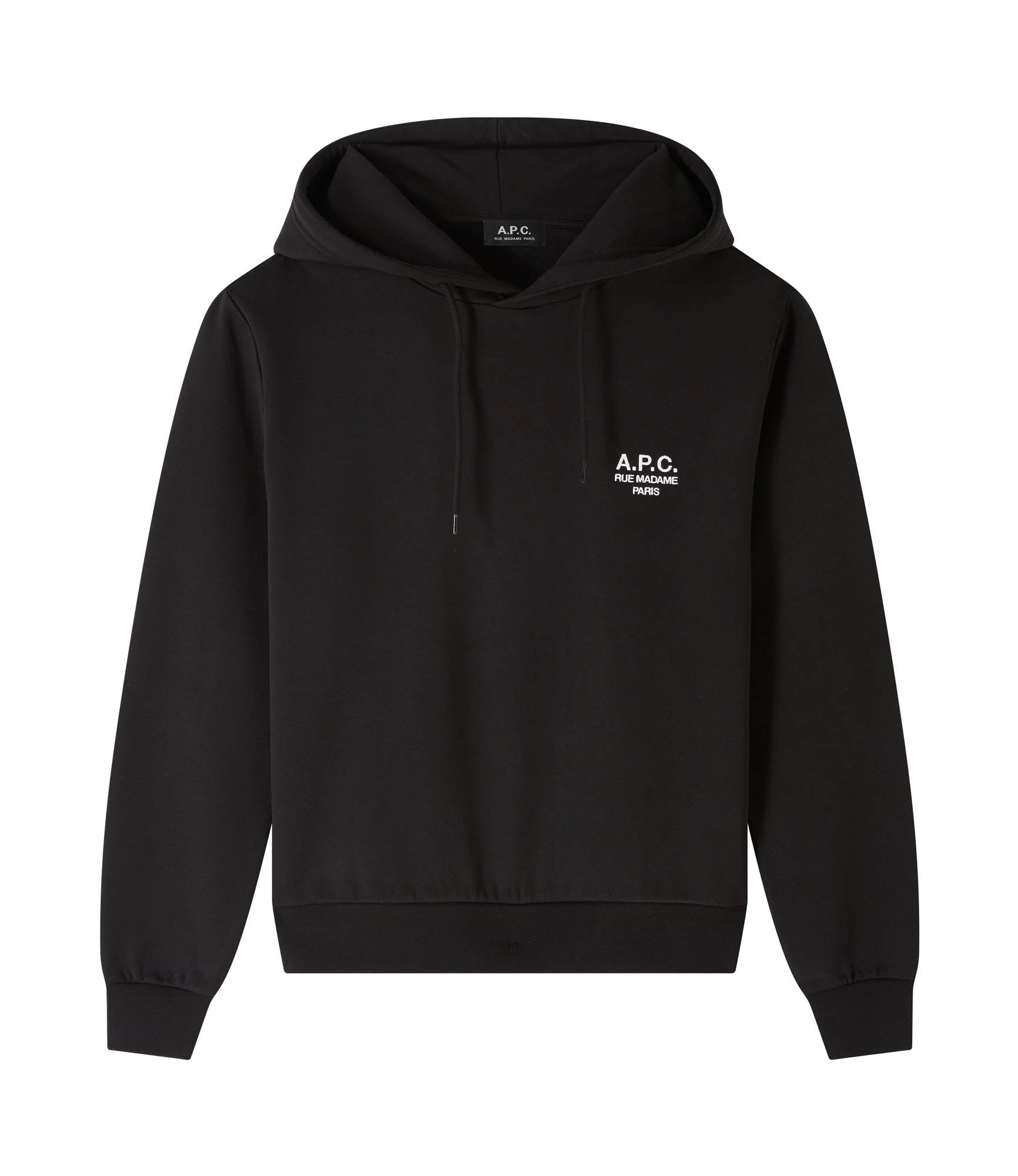 A.P.C. hoodie. - Unisex model. - Straight cut. - A.P.C. Rue Madame Paris' embroidered over the heart. - Tone-on-tone drawstrings. - This garment is GOTS certified which guarantees that it contains a minimum of 95% certified organic fibers and complies with strict social and environmental criteria throughout the production chain. Size Advice - Tim is 6'2 tall and is wearing size M. Composition & Material - 100% cotton. - Portuguese material. - Made in Portugal. - Machine wash cold (86°F) inside-out.