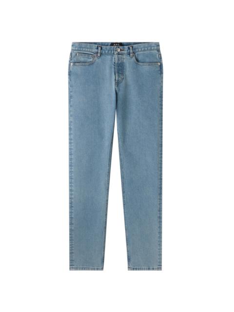 PRODUCT DETAILS Unisex model. Mid-rise. Soft denim canvas. Fitted leg. Fitted at ankle. Button fly. Caramel-colored topstitching. FABRIC & CARE - 98% Cotton. 2% Elastane. - Japanese material. - Made in Vietnam. - Machine wash cold, inside-out. - Spin dry at minimum speed. - Do not tumble dry. - The jeans may appear to shrink after washing, but will regain their shape when worn. SIZE Yandi is 6'1" tall and is wearing size 30. This model fits true to size; choose your usual size.