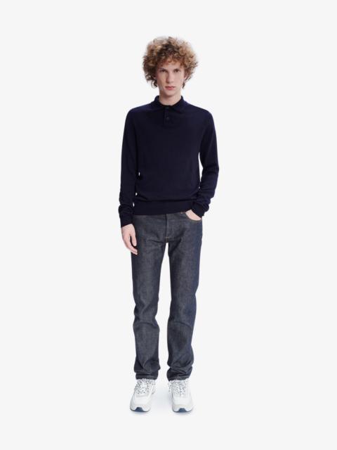 A.P.C. jeans. - Slim tapered fit. May need to size up 1 size for more comfortable fit. - Smallest leg opening compared to New Standard Standard and Petit Standard. - Mid-rise. - Rigid Japanese denim canvas will break-in with wear. - Fitted leg. - Button fly. - Caramel topstitching. Size Advice - Matthieu is 6'2 tall and is wearing size 30. - Slim tapered fit. May need to size up 1 size for more comfortable fit. - Smallest leg opening compared to New Standard Standard and Petit Standard. Composition & Material - 100% cotton. - Japanese material. - Made in Vietnam. - Machine wash cold (86°F) inside-out. - Spin dry at minimum speed. - Do not tumble dry. - These jeans may seem shrunken after washing but they return to their original shape when worn.