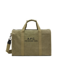 Cotton canvas duffle bag in khaki. · Press-stud tab at rolled carry handles · Adjustable and detachable crossbody strap · Logo printed at face · Zip closure · Mesh zip pocket at interior · H14" x W18" x D7.5" Supplier color: Kaki