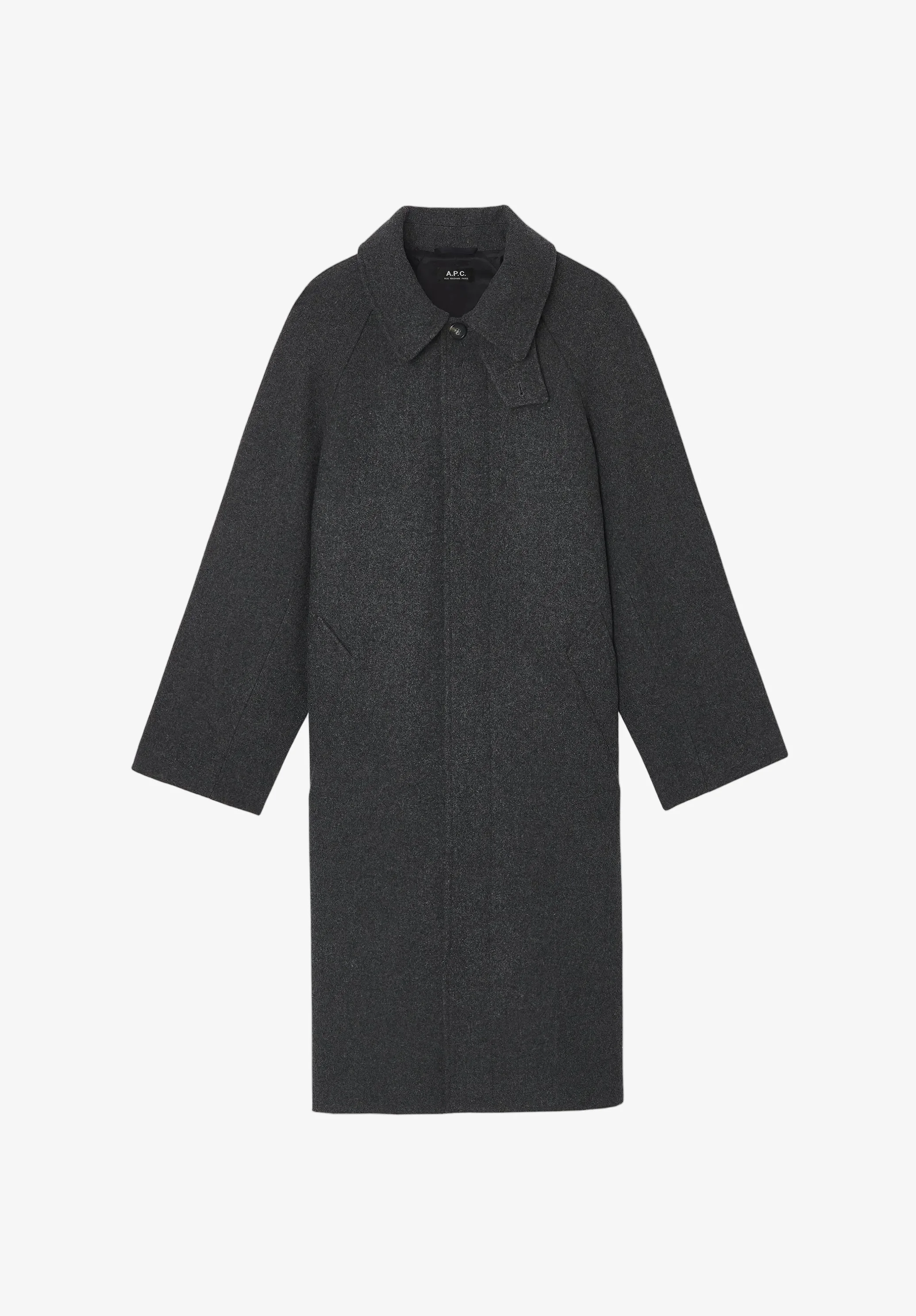 - Straight cut. - Knee length. - Classic collar with a buttoned flap. - Hidden closure with faux horn buttons. - Two side pockets. - Contrasting lining. Size Advice - Henry is 6' tall and is wearing size M. Composition & Material - 100% wool. - Portuguese material. - Made in Bugaria. - Dry clean only.