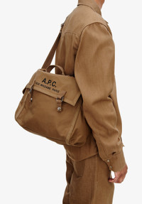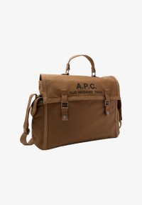- Water-repellent waxed canvas. - Main pocket closes with snap buttons. - Two side pockets. - One interior zip pocket. - One snap pocket in back. - Adjustable strap to carry the bag on the shoulder or across the chest. - One handle to carry the bag by hand. - A.P.C. Rue Madame Paris printed logo. Size Advice - Dimensions: 13.4 x 9.8 x 3.9. Composition & Material - 100% cotton. - Made in Hong Kong. - Care instructions: wipe with a soft dry cloth.