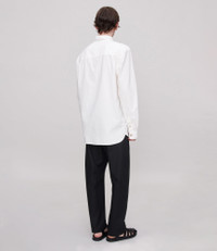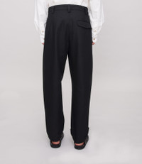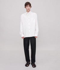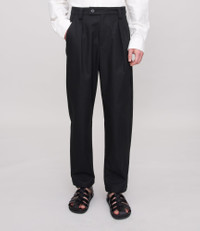 - Wide leg with a slight carrot cut. - Front pleats at the waist. - Off-centre buttoned placket. - Zip fly. - Two side pockets and one back flap pocket. - 100% organic cotton. Size Advice - Tristan is 6'1 tall and is wearing size 48. - This item sizes normally. We recommend that you select your usual size. Composition & Material - 100% cotton. - Italian material. - Made in Tunisia. - Machine wash cold (86°F) inside-out.