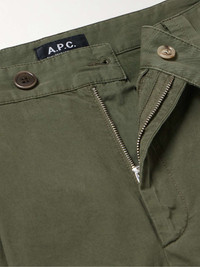 A.P.C.'s clothes may look simple, but there's nothing easy about their immaculate cuts and considered details. Cut for a tapered fit, these 'Renato' chinos are made from sturdy cotton-twill and designed with pleats for extra room at the top. Size & Fit - Fits true to size. Take your normal size - Tapered leg, low-crotch style - Mid-weight, non-stretchy fabric - Model is shown wearing an IT 46 - Model measures: waist size 30, height 6'2"/ 188cm Details & Care - Army-green cotton-twill - Button and zip fastening - 100% cotton - Machine wash