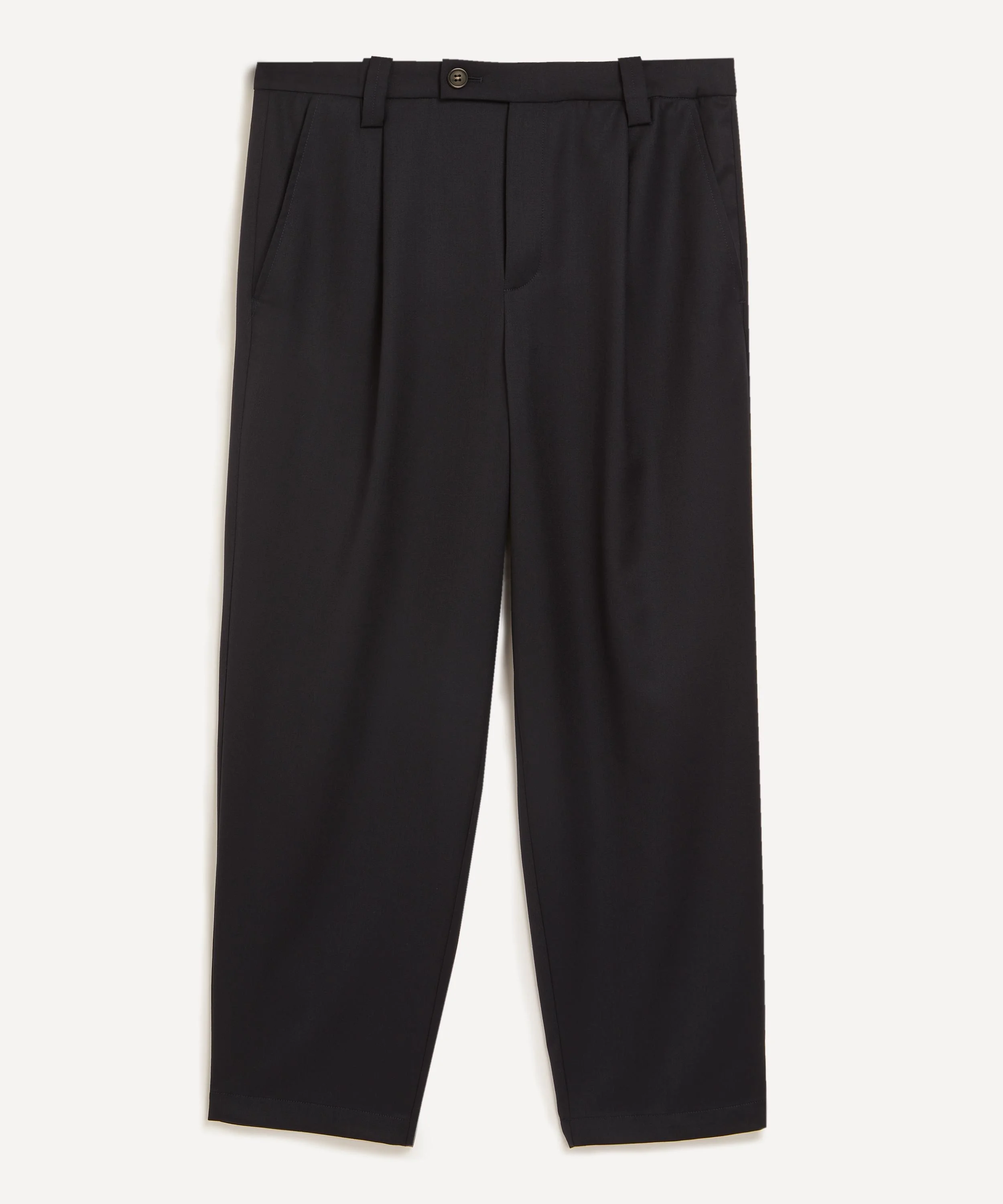 DETAILS Cotton chino-style trousers Loose fit Wide leg Tapered ‘carrot’ cut Offset buttoned tab closure Zip fly Belt loops Side pockets Back flap pocket SIZE & FIT Model is 186cm/6'1"; Chest 96cm; Waist: 81cm; Hips: 93cm and wears a size 38/48 COMPOSITION & CARE 100% Cotton Dry clean only