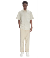 - Straight cut with a loose fit. - Classic collar. - One pocket over the heart. - Loose sleeves. - Rounded shirt hem. - Faux mother-of-pearl buttons. - 100% organic cotton. Size Advice - Vincent is 6'1 tall and is wearing size M. Composition & Material - 100% cotton. - Italian material. - Made in Morocco. - Machine wash cold (86°F) inside-out.