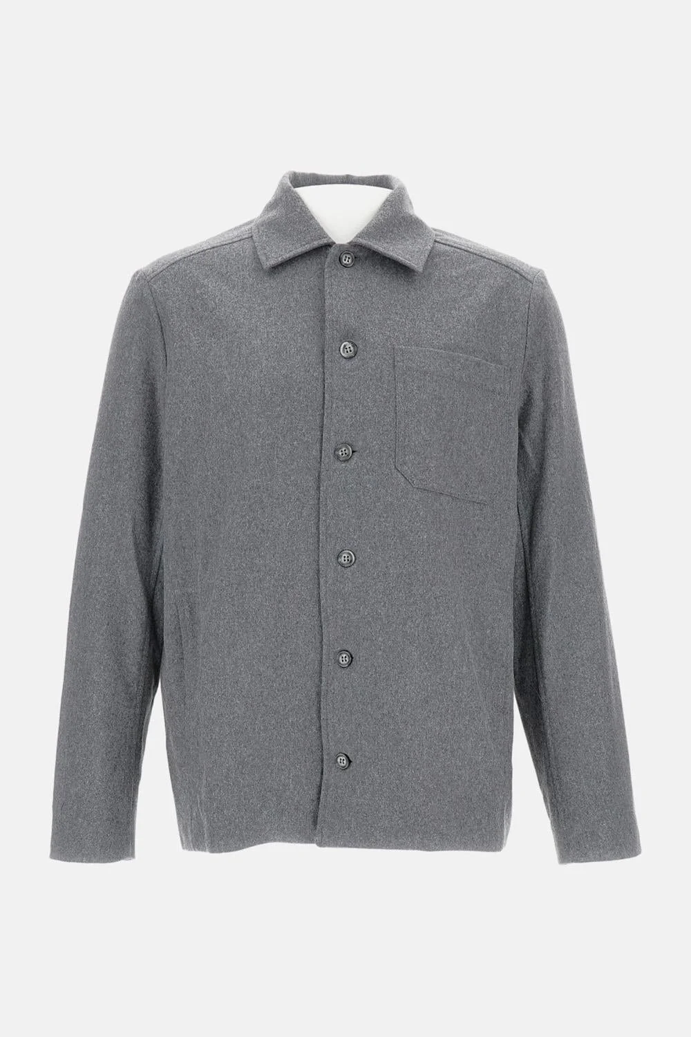 Wool blend shirt with front button closure, front pocket, and pointed collar. Grey color Details and Care Color: Grigio Composition: 70% WO 25% PA 5% AF Made in: Tunisia Sku: WOAPNH02962PLA