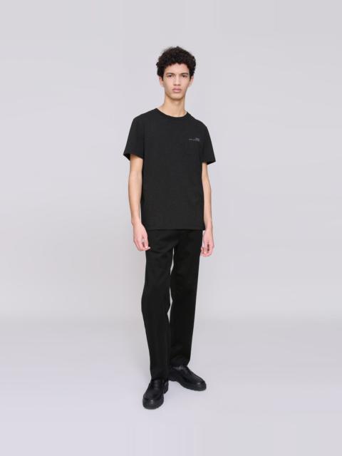 - Unisex model. - Straight cut. - Crew neck. - Small black 'A.P.C. ITEM 001' printed logo. - 100% organic cotton. Size Advice - Sofi is 5'10 tall and is wearing size S. - Tim is 6'2 tall and is wearing size M. Composition & Material - 100% cotton. - Made in Turkey. - Machine wash cold (86°F) inside-out.