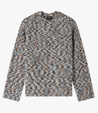 A.P.C. Men's sweater. - Fits oversized. Size down 1 size for regular fit. - Thick warm material. - Straight cut with a slightly loose fit. - Crew neck. - Side slits. - 36% mohair in line with a voluntary standard that attests to wool production respecting animal welfare. Size Advice - Leo is 6'2 tall and is wearing size M. - Fits oversized. Size down 1 size for regular fit. Composition & Material - 40% wool. 36% mohair. 13% polyamide. 11% cotton. - Italian material. - Made in Turkiye. - Hand wash or delicate cycle.