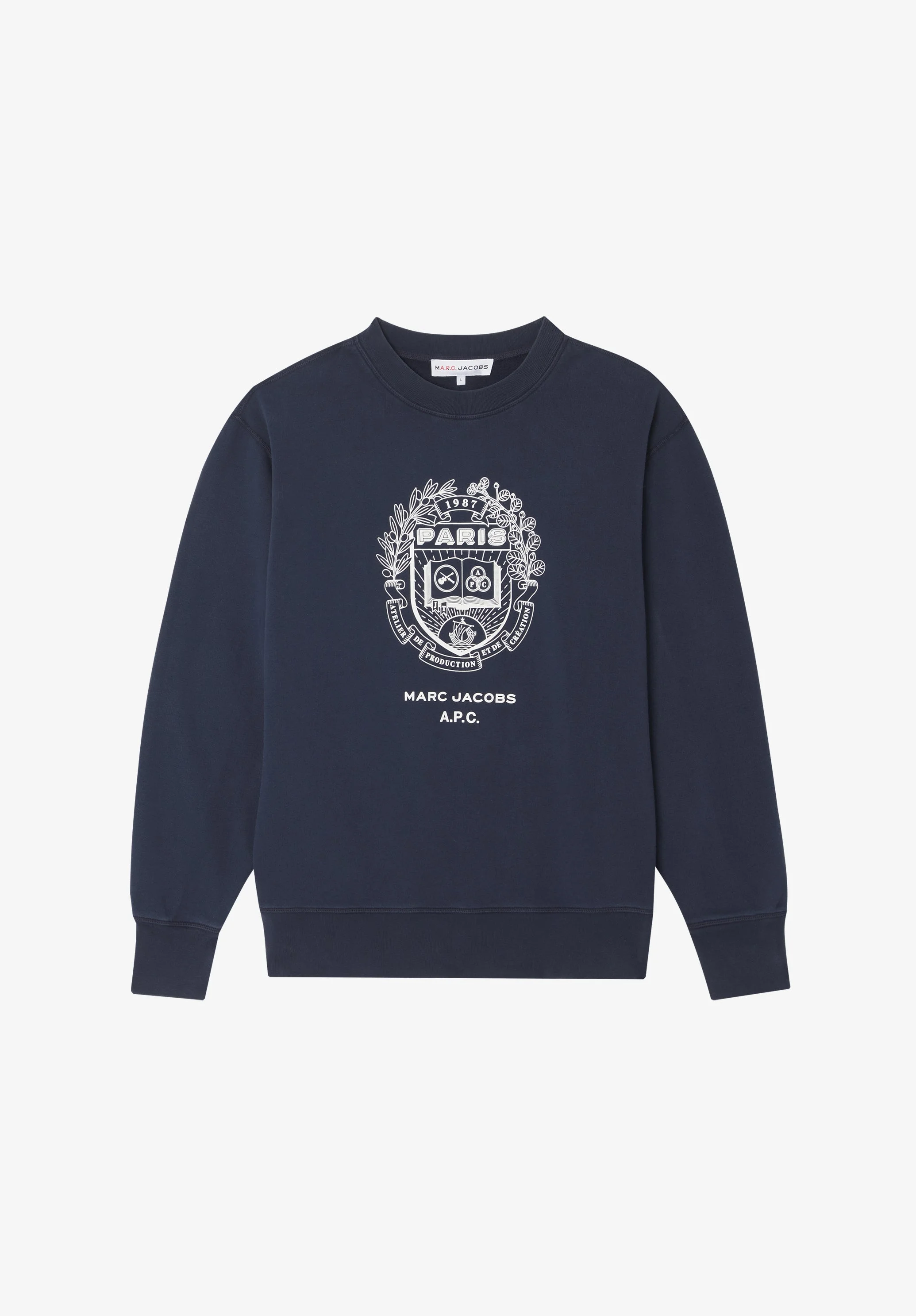 A.P.C. x Marc Jacobs interaction sweatshirt. - Straight loose-fitting cut. - Crew neck. - Paris A.P.C. University logo on front. - Dropped shoulders. Size Advice - Adam is 185 cm tall and is wearing size M. - This item runs true to size. We recommend that you select your usual size. Composition & Material - 100% cotton. - Portuguese material. - Made in Portugal. - Machine wash cold (30°C) inside-out.