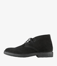 - Boots in suede split. - Ankle high. - Lined with faux fur. - Two-hole lacing. - Tone-on-tone topstitching. - Crepe sole. Size Advice - Sizes: 40 to 45. Composition & Material - 100% calfskin leather. - French and Dutch material. - Made in Portugal. - To care for your leather use a suede brush.