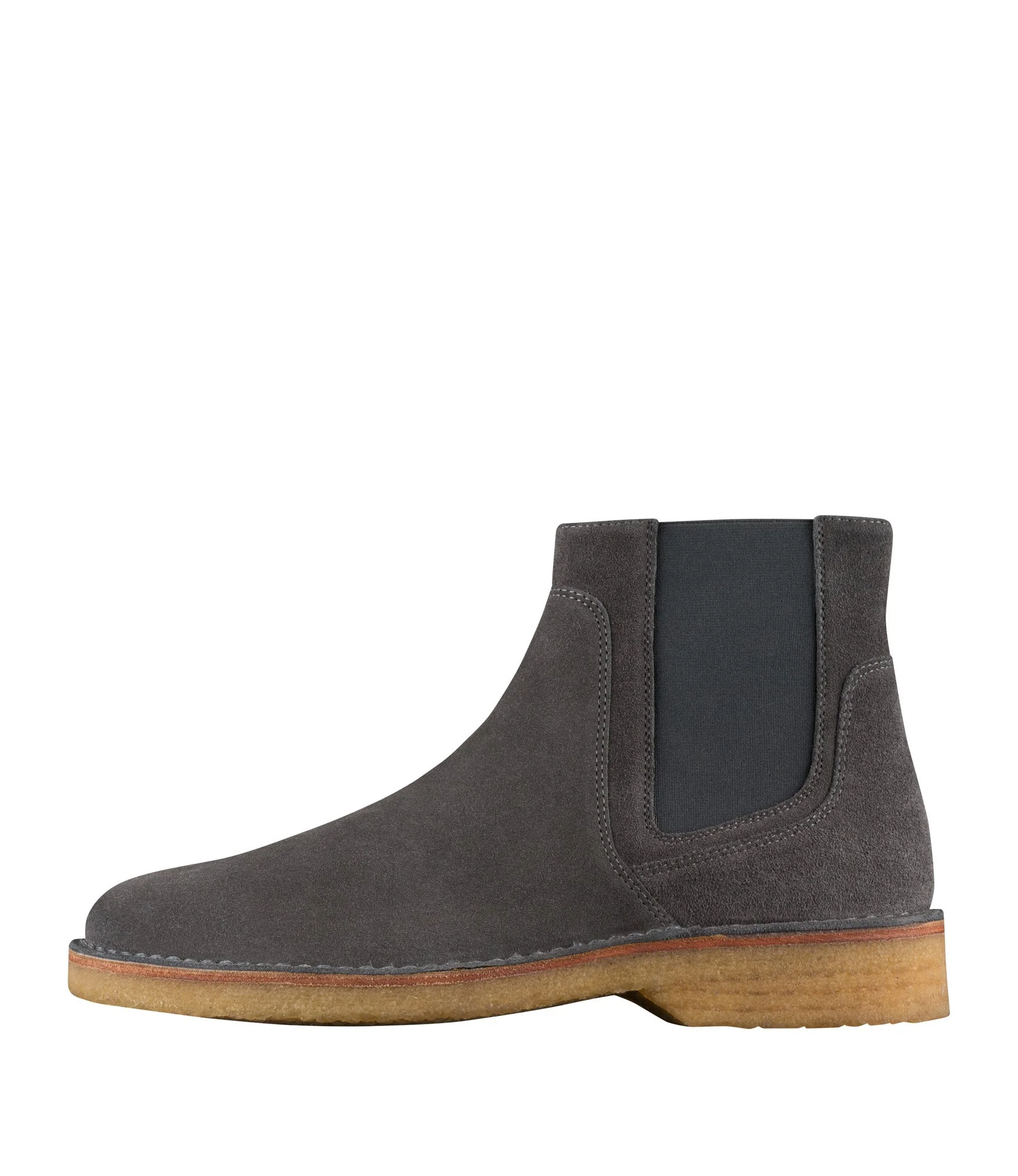 - Ankle boots in suede split leather. - Elasticated side gores. - Ankle high. - Tone-on-tone topstitching. - Crepe sole. Size Advice - Sizes: 40 to 45. Composition & Material - 100% cowhide leather. - Made in Portugal. - To care for your leather use a suede brush. Our commitments Through its RESPECT program A.P.C reduces (by implementing many practical measures to improve its environmental footprint) regulates (by respecting and enforcing its ethical responsibility on the part of its employees as well as its suppliers) and reuses (through its recycling vintage or quilts and butler programs for example).