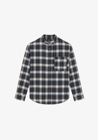 - Cotton flannel. - Straight cut with a loose fit. - Officer collar. - Sloping shoulders. - One buttoned pocket over the heart. Size Advice - Indy is 6'1 tall and is wearing size M. Composition & Material - 100% cotton. - Portuguese material. - Made in Tunisia. - Machine wash cold (86°F) inside-out.