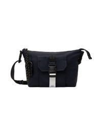 Nylon ripstop belt bag in navy. · Adjustable webbing belt-style strap · Press-release flap pocket and carabiner at face · Zip pocket at side · Patch pocket and logo patch at back face · Zip closure · Five card slots at interior · Patch pocket and zip pocket · Plain-woven lining · Logo-engraved hardware · H7" x W8.5" x D2" Supplier color: Dark navy