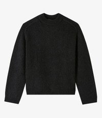 - Soft downy material. - Straight loose cut. - Crew neck. - Oversized raglan sleeves. - Textured details on the shoulders. - 25% recycled polyamide. Size Advice - Leo is 6'2 tall and is wearing size M. Composition & Material - 65% alpaca. 25% recycled polyamide. 10% wool. - Italian material. - Made in Romania. - Hand wash or delicate cycle.