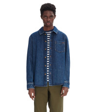 A.P.C. Men's overshirt. - Straight loose cut. - Sloping shoulders. - Classic collar. - One pocket with A.P.C. logo embroidered over the heart. - Faux horn buttons. - Caramel topstitching. - 100% organic cotton. Size Advice - Vincent is 6'1 tall and is wearing size M. Composition & Material - 100% cotton. - Japanese material. - Made in Vietnam. - Machine wash cold (86°F) inside-out.
