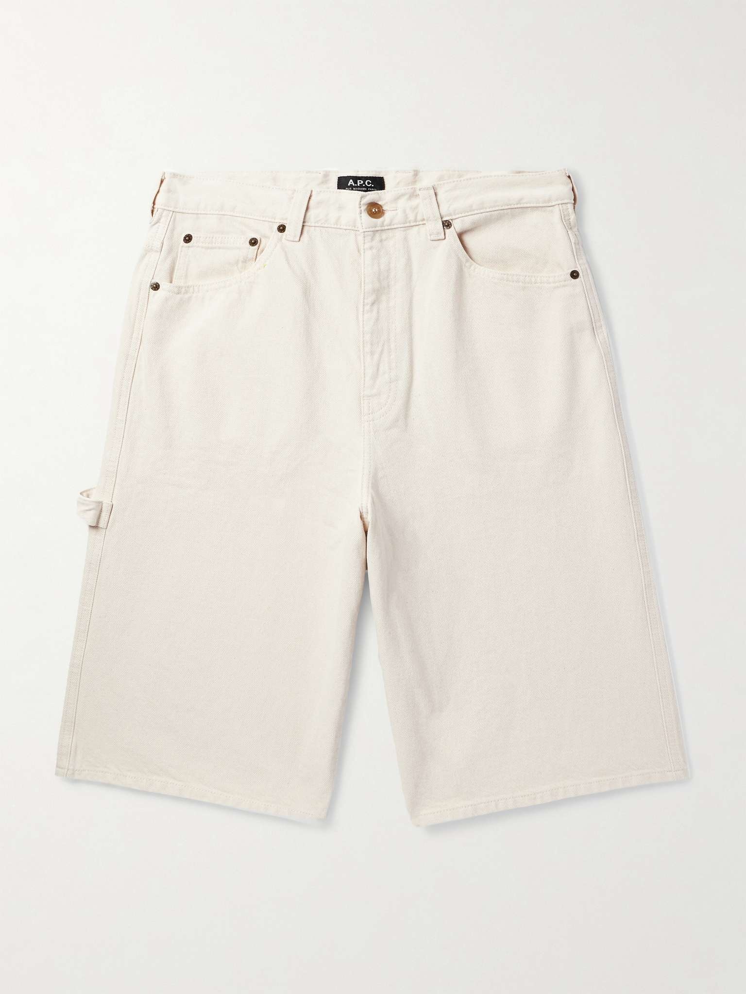 A.P.C. specialises in understated, everyday staples. These denim 'Westland' shorts are cut to hit just below the knees and have a hammer loop inspired by vintage workwear styles. Size & Fit - Fits true to size. Take your normal size - Dropped crotch style - Mid-weight, non-stretchy fabric - Model is shown wearing a S - Model measures: waist size 30, height 6'1"/ 185cm Details & Care - Ecru denim - Button and zip fastening - 100% cotton - Machine wash