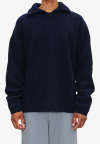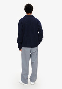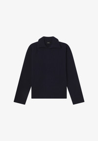 - Soft warm material. - Straight cut. - Spread collar. - Sloping shoulders. - Wide ribbing on entire jumper. Size Advice - Bodien is 6'2 tall and is wearing size M. Composition & Material - 90% wool. 10% cashmere. - Italian material. - Made in Romania. - Hand wash or delicate cycle.